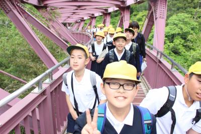 1日目は山中温泉の鶴仙渓と山中漆器産業技術センターと福祉センターゆざやと山中座・温泉街を回り、夜は粟津温泉の喜多八に宿泊しました。こおろぎ橋やあやとり橋を渡ったり、温泉街でお土産を買ったりして、楽しく活動できました。山中漆器産業技術センターでは、実際に作っている様子を見学でき、みんな感動の声をあげていました。宿では、川北町の3小学校が集まり、お互いの学校紹介を行いました。