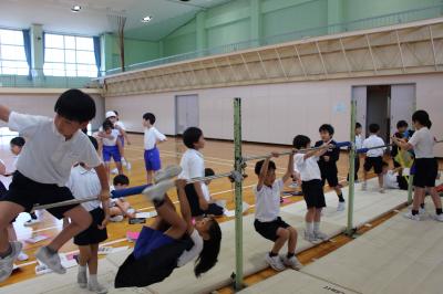 休憩時間の時は、学年ごとに使用できる時間が決まっていて、今日は2年生の順番でした。どの子も一生懸命に練習して、1つでもできる技を増やそうとがんばっていました。