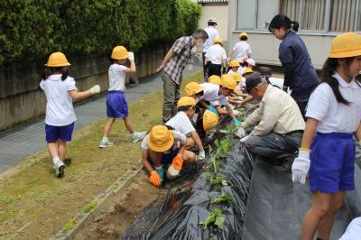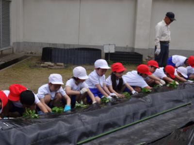 29日(木)1,2年生がさつまいもの苗植えをしました。