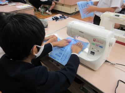 ミシンの練習をしています。とても上手に縫っていますが、横で見ているとどきどきします。すみません。
