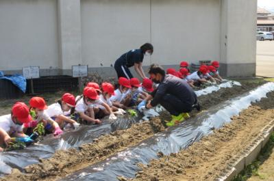 JAの方に教えてもらい、さつまいもの苗を植えました。秋が楽しみですね。