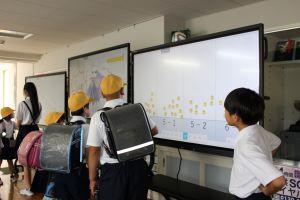 元気なあいさつができたら、電子黒板にタッチすると、ニコニコマークがつきます。