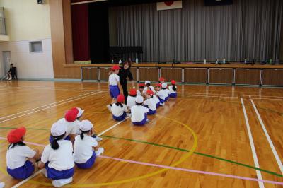 まず、準備運動として、体育館の中を走りました。休むことなく、歩くことなく、全員最後まで走りぬくことができていました。