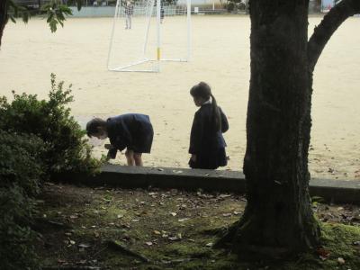 ドングリをさがして、拾っています。この季節は、みんながさがすので、早い者勝ちとなります。