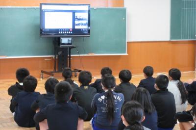 川北中学校2年生の方々に、中学校について教えてもらいました。今回は、リモートで行いました。