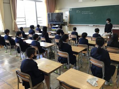 教室で、校長先生のお話を聞きました。