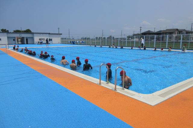 プール開きをしました。今年初めてのプールは6年生でした。気温、水温ともばっちりでした。
