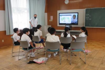 田植えなどでお世話になった披岸さんをお招きして、お米について調べたことの発表をしました。さらに詳しく教えてもらいました。