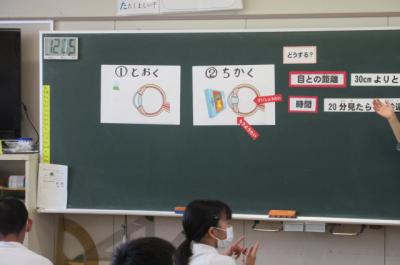 目の健康についてのおはなし。20分近くを見たら、20秒遠くを見るとのこと。