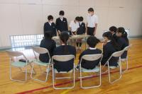 川北中学校でレベルアップ川北会議が開催され、6年生の代表者が直接、ほかの6年生は教室でリモート参加しました。メディアとの付き合い方について、川北町4小中学校で話し合いをしました。