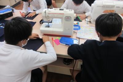 エプロンをつくっています。今日の課題はポケットづくりとのこと。
