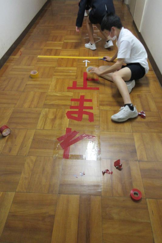 校舎の廊下などにダイナミックにみんなに役立つものを製作しています。ラダーやあみだくじ・・・などもあります。