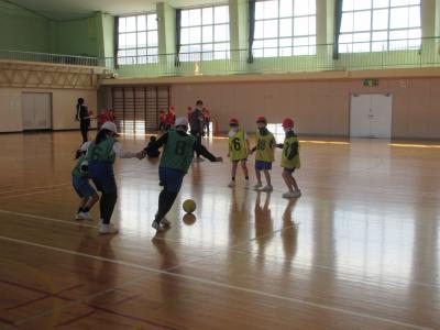 手つなぎサッカーです。どのチームもチームワークよくがんばり、とても盛り上がっていました。