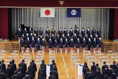 3年ぶりに全校そろっての卒業式となりました。インフルエンザ流行の中、卒業生は全員が参加できました。おめでとうございます。