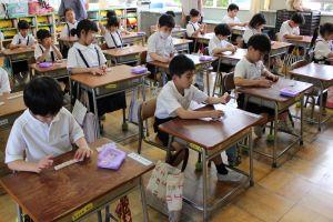 先生の「黒板の前でやってくれる人いますか?」の問いかけに、たくさん手が挙がっています。