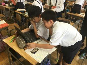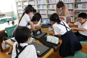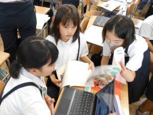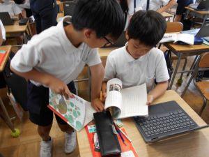 図書室では、「図書クラブ」が本の紹介をクロムブックで作成していました。