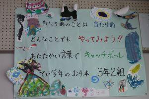 3年2組の学級目標に「あたたかい言葉でキャッチボール」と書いてあります。