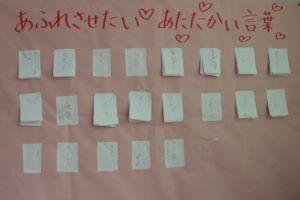 そこで、学級活動の時間に、教室にあふれさせたい、あたたかい言葉を集めて、掲示しました。