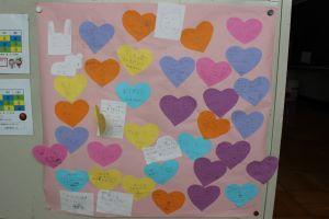 1組でも、あたたかい言葉を一人一人が考えて、ハートの中に書きました。