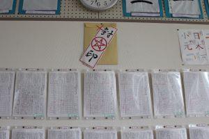 その日の給食を残さず食べたクラスに日付が書かれています。