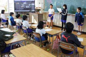 まず、2年生の授業です。2年生では、2月22日の「6年生を送る会」に向けて、練習をしています。今回はクイズをする予定です。いろいろなクイズを考えて、大きな声で問題を出していました。