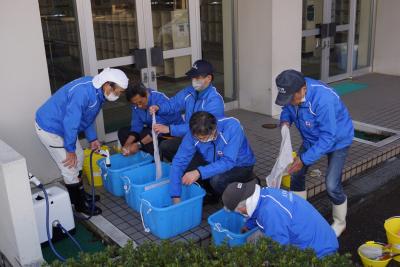 あいにくの寒さと雨ですが、みんなの準備と気合いは朝から熱いです。