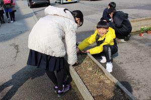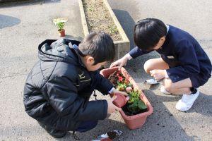 子供達に見てもらおうと、島﨑先生が植木鉢に植え替えてくださいました。