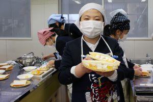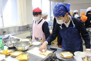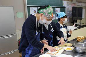 6年生は家庭科の学習で、お世話になった方へ感謝の気持ちを伝えるためにサンドイッチをつくりました。