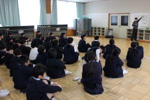 まず、校長先生からのお話がありました。「修了」の漢字にこめられた意味を話した後、1年間みんながんばったことをお話してくださいました。そして、次の学年に向けて期待していることを、それぞれの学年に伝えました。