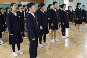 最後に、全校で校歌を歌いました。卒業式でもすばらしい歌声を聞かせてくれましたが、今日もはりのある大きな声で歌うことができていました。