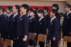 最後に、全校で校歌を歌いました。卒業式でもすばらしい歌声を聞かせてくれましたが、今日もはりのある大きな声で歌うことができていました。