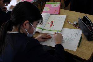 今日は、女の子の気持ちを考え、クラゲチャートを完成させます。
