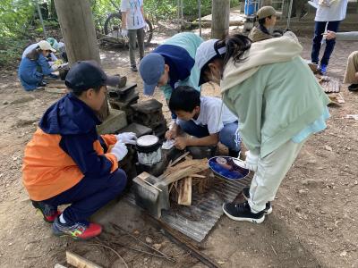 1日目の午前中はあいにくの雨になってしまいましたが、雨バージョンの活動を味わえるのだからと切り換えて、ジオツアーや野外炊飯に意欲的に取り組むことができました。