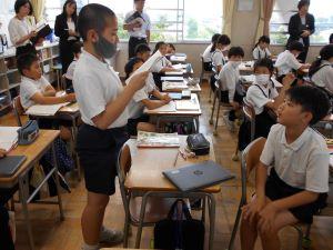 今日は、4年生の授業を学校の先生方が参観されます。
