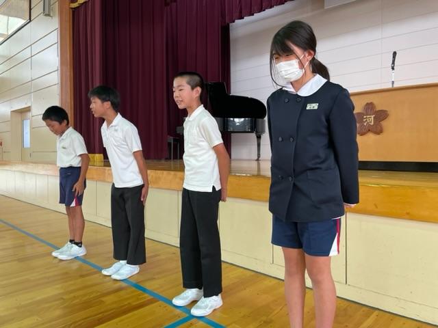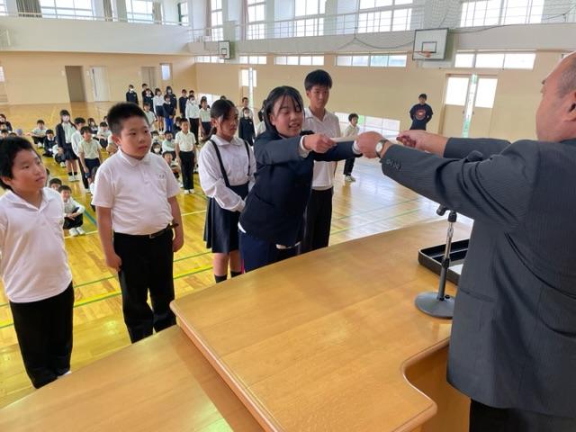後期委員会などの任命式が行われました。立派な返事からは、やる気が感じられ、下学年のお手本となっていました。