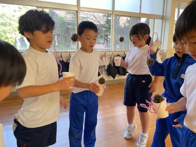 生活科で作った松ぼっくりのけん玉が大フィーバー٩(๑>∀<๑)۶