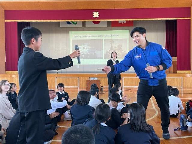 アメリカのNASAからジョージさんがやって来て、課題解決の大切さや方法を教えてもらいましたദ്ദി˶ー̀֊ー́ )✧