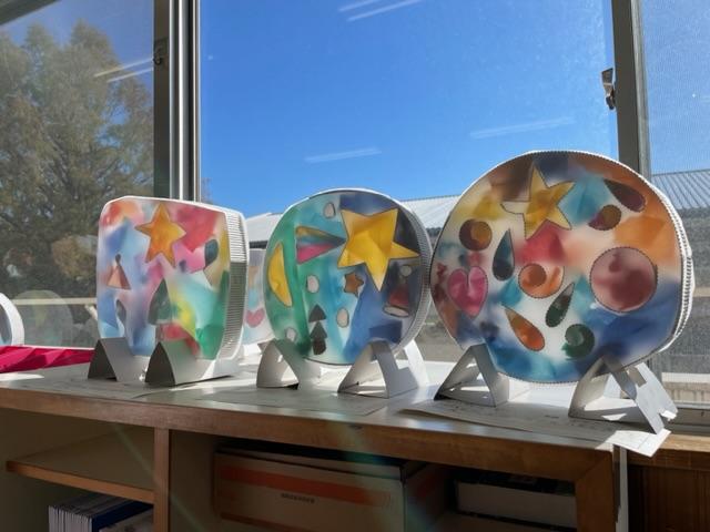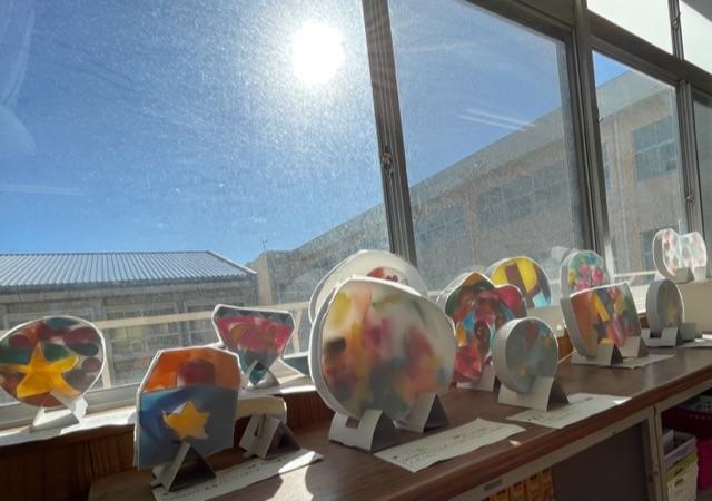 算数で図形の勉強した後で、残った色紙を使って工作したらしく、職員室に見せに来てくれましたദ്ദി˶ー̀֊ー́ )✧