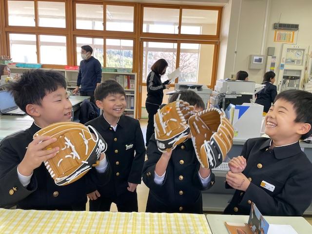 大谷さんからいただいたグローブは大人気です。子どもたちは外で野球を楽しんでいました。