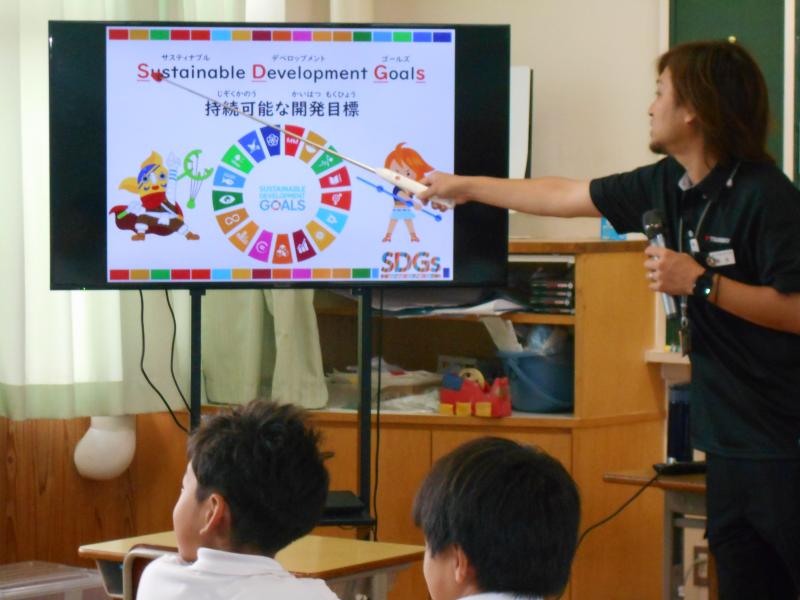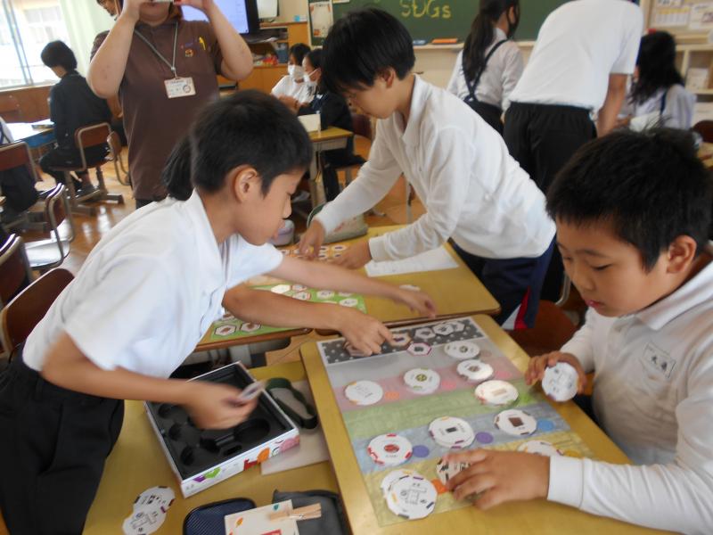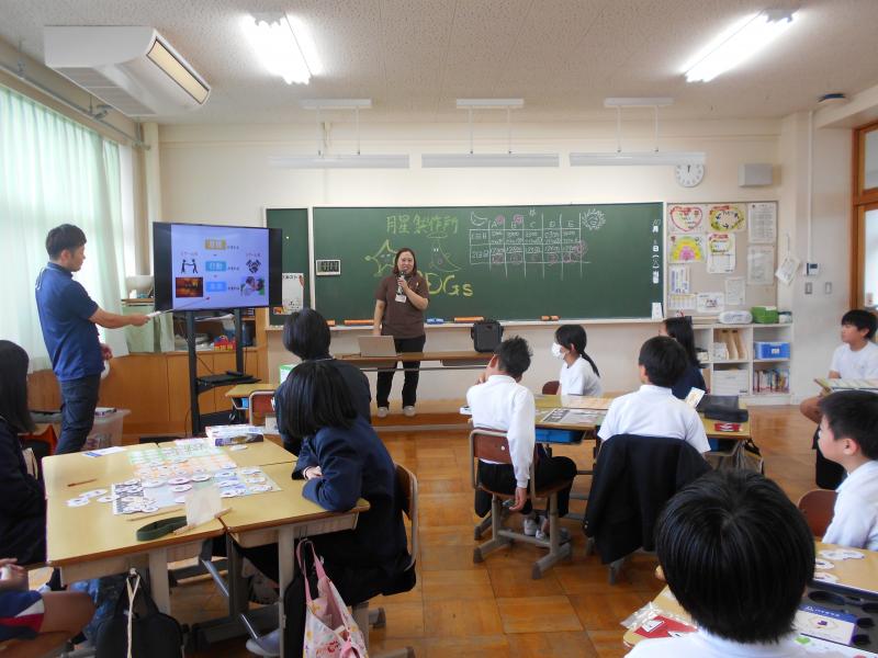 10月8日の5,6限目に5年生が家庭科の授業で月星製作所の皆さんとSDGsについて楽しく学ぶことができました。