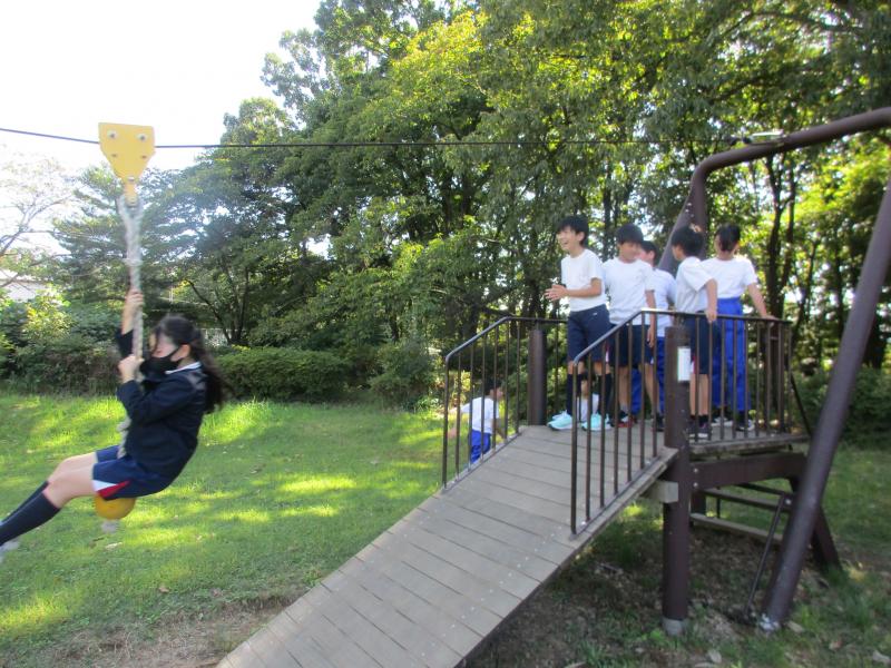 中庭ではブランコに乗ったり、ジャングルジムで遊んだり、虫探しをしたり…
