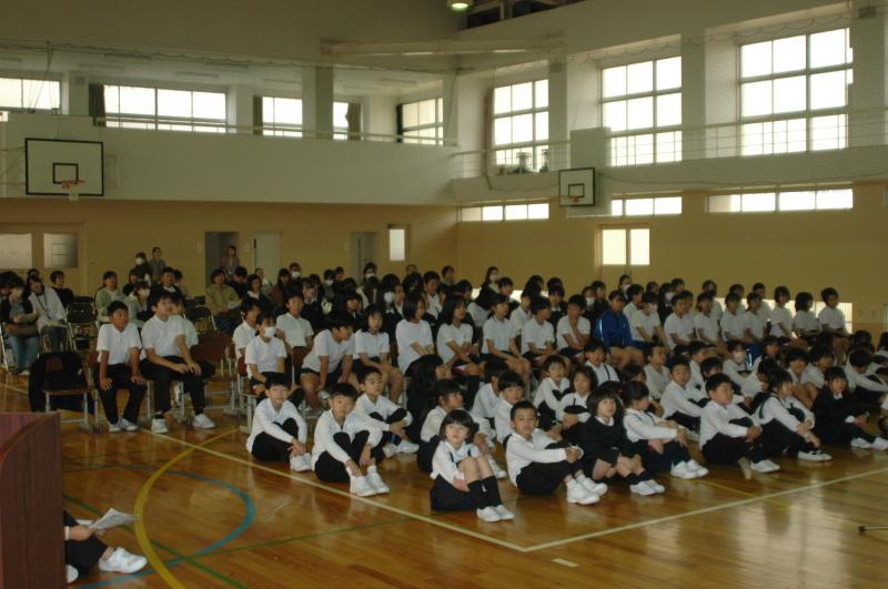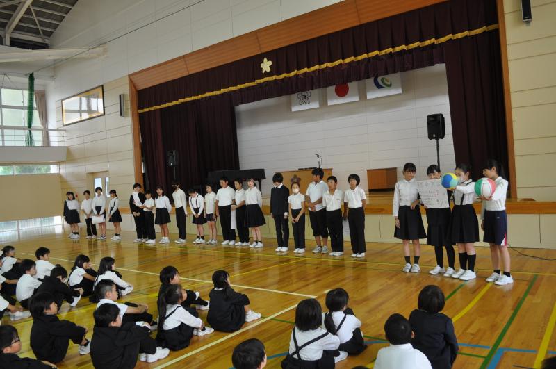 「協力して楽しい思い出になるオアシス集会!」というめあてで3年生が1.2年生と楽しく交流しました。3年生が考えた内容は「ピラニア」「バナナおにごっこ」みんな汗だくで楽しみました。3年生手作りのプレゼントももらってうれしそうな1,2年生でした。