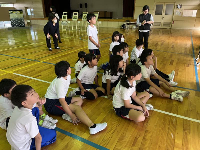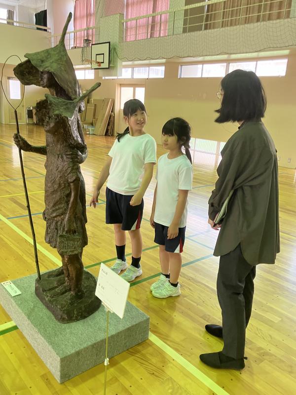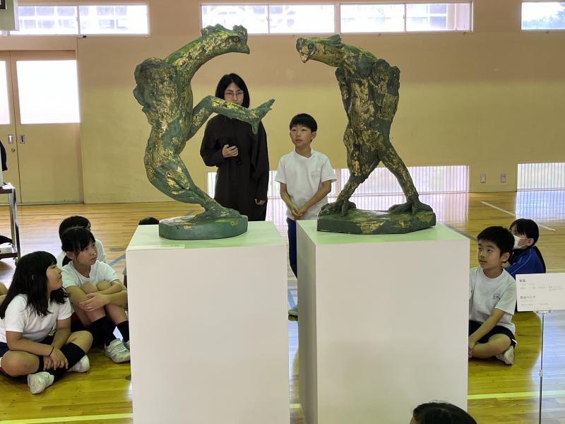 学芸員さんから作品の素材や鑑賞の仕方、鑑賞マナーなどを教えていただき、感じたことを自由に対話しながら、子どもたちは作品の世界に吸い込まれていました。