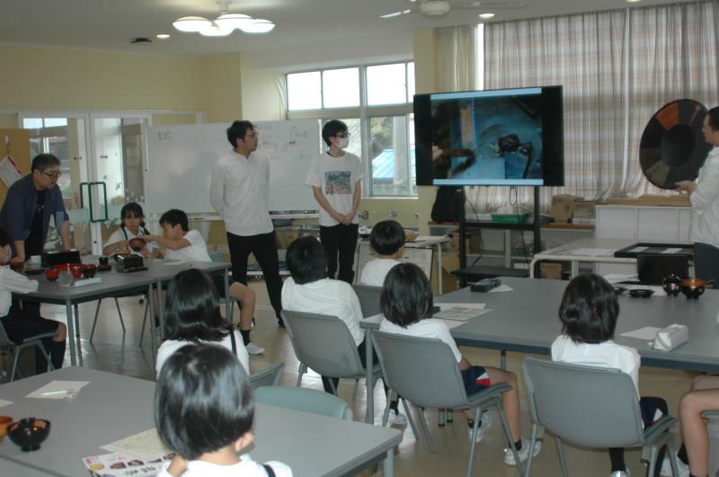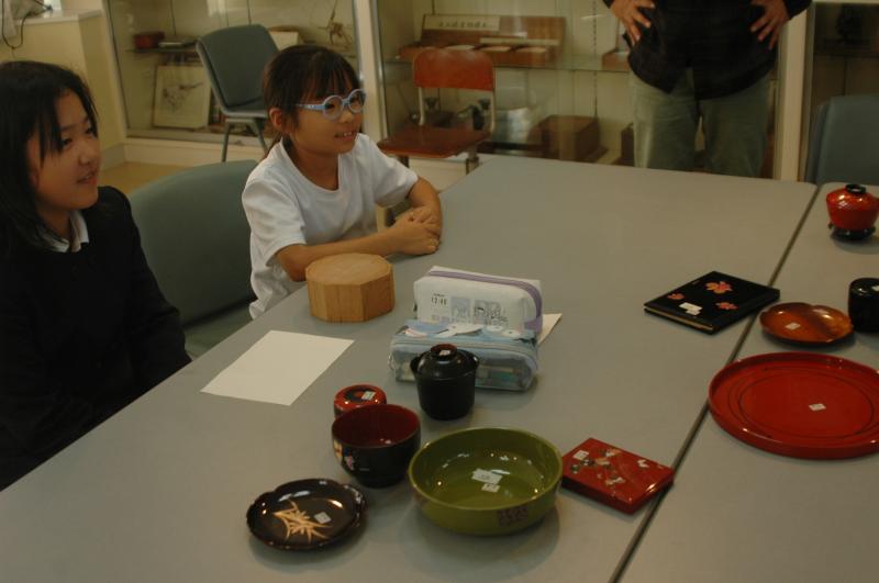 伝統的工芸品教育事業として 4年生が「山中漆器」について学びました。