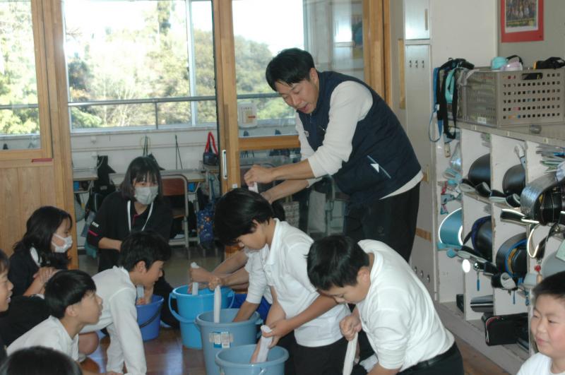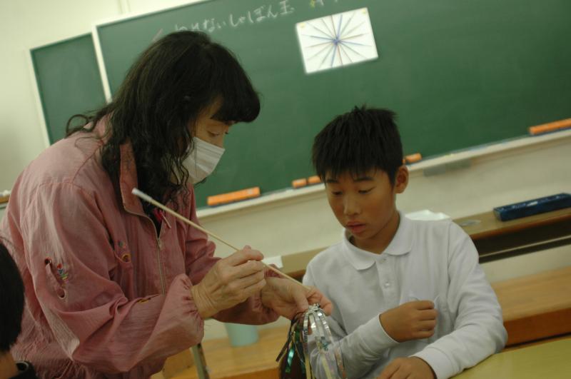 5年生に「割れないシャボン玉キラキラスティック」の作り方を教えに来てくださいました~!