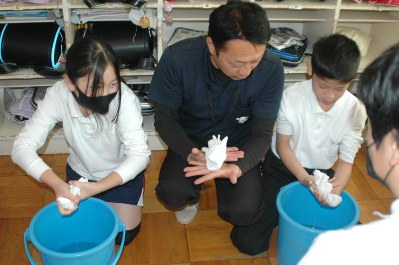 「うわっつ、先生!まっピンクや~」「こんなに汚れがついてるぅ」