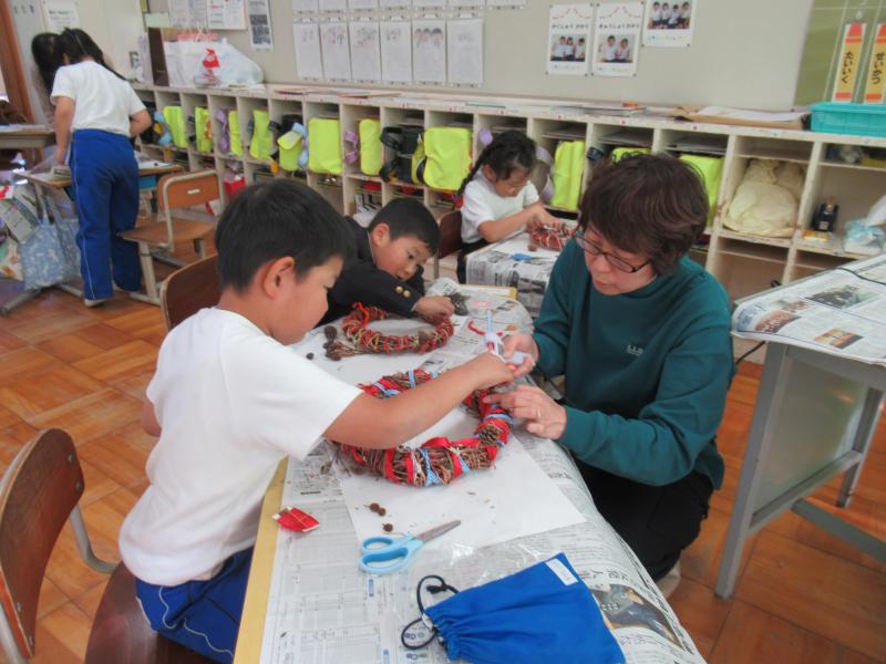 1年生の生活科で「秋の実のリースづくり!」
