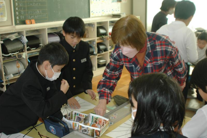授業の最後に、お気に入りの作品を指さす子どもたち。選びきれず、両手両足を使っている子も(/・ω・)/!それぞれの感性で、芸術鑑賞を満喫できたようです。