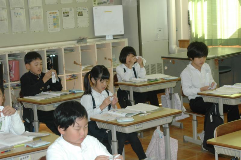 11月8日~11月20日まで、養護教諭による保健指導を行っています!今回は「歯の染め出し」も体験!