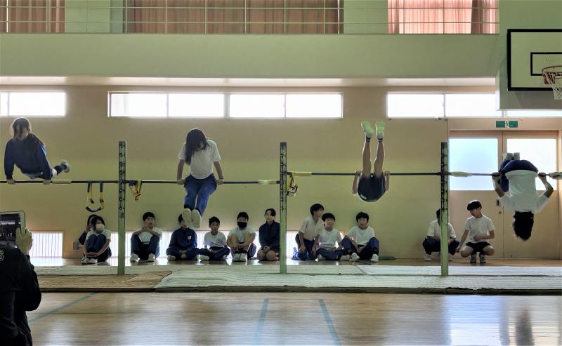 どの子も学年目標に向かって一生懸命取り組む姿に感動!くるりんベルトや補助台等も使ってみんなあきらめずに技にチャレンジしていました。苦手な子も得意な子もみんなが頑張れるすてきな大会でした!